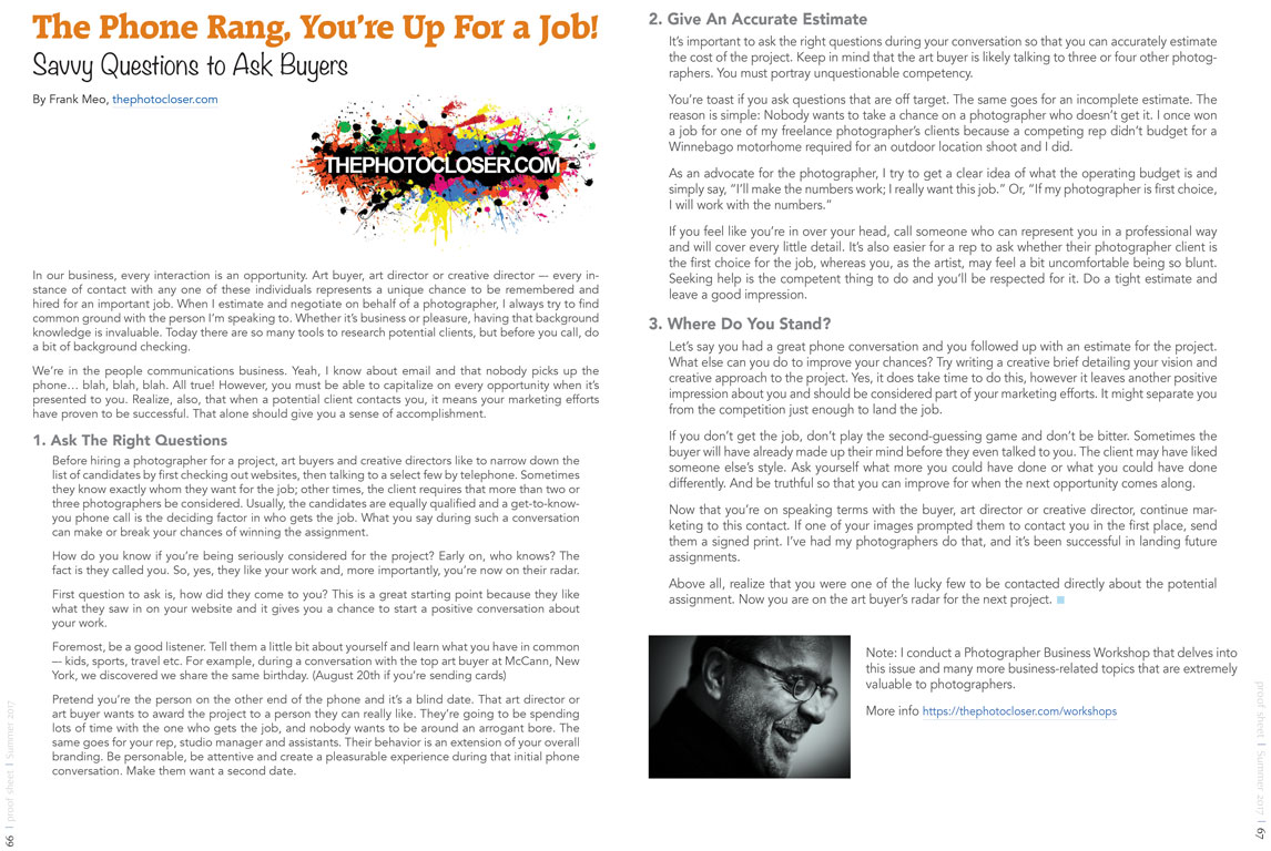 Frank appears on Summer 2017 “proof sheet” by APA|NY on pages 68-69. View and download at https://issuu.com/apany/docs/proof-sheet_summer2017_hi-03.