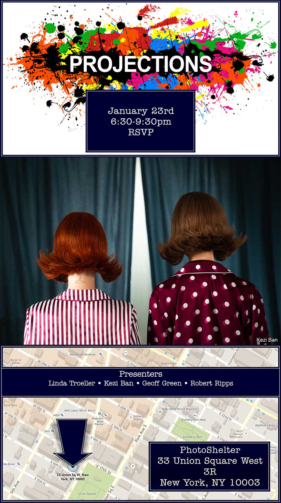We kick off the New Year with a stellar line-up of presenters: Linda Troeller, Kezi Ban, Geoff Green and Robert Ripps. We invite you and your colleagues to a thoughtful evening of photography, with this lineup the evening presentation promises to be provocative and inspiring.